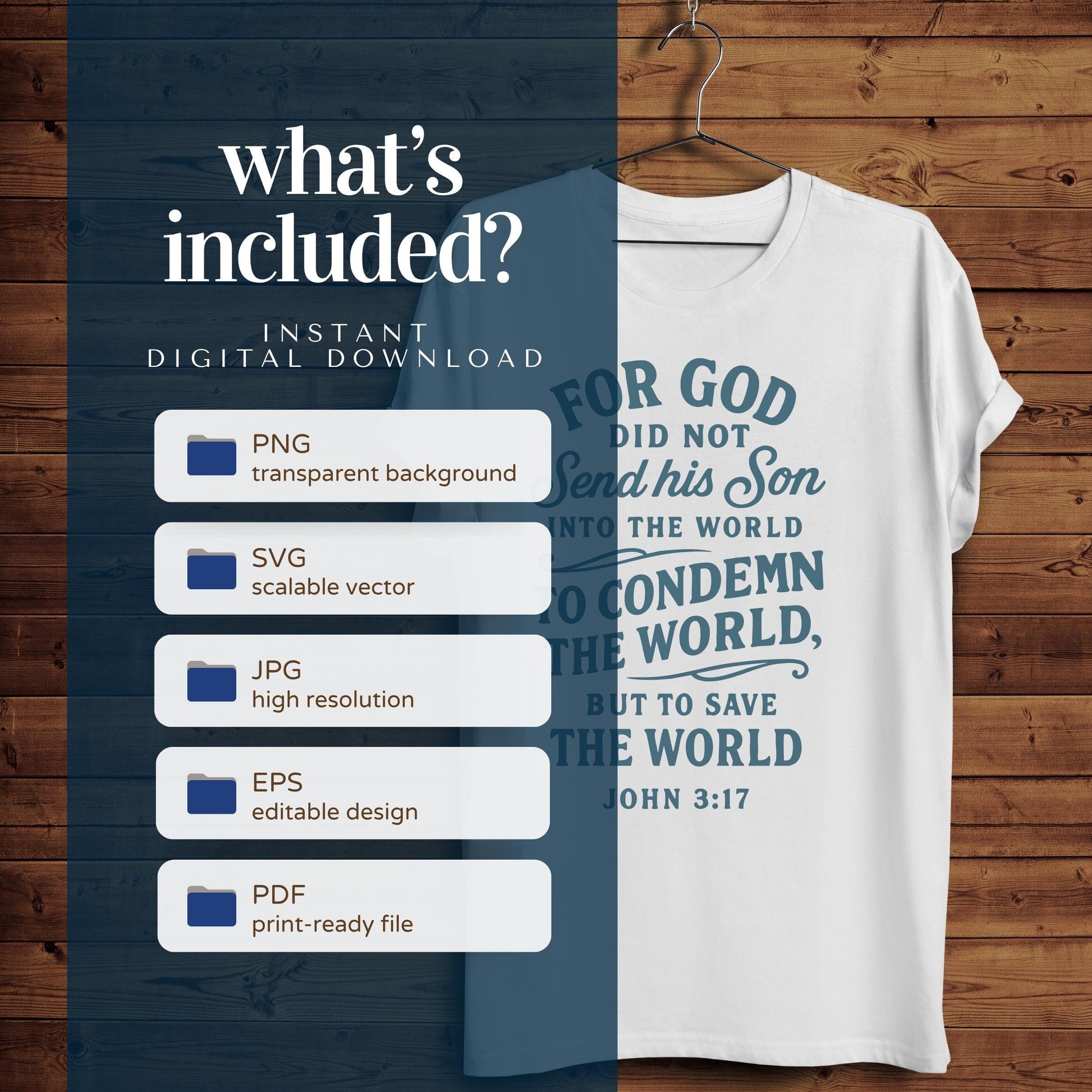 - Tags: Bible journaling, Christian apparel, Dtf design, Inspirational decor, John 3:17