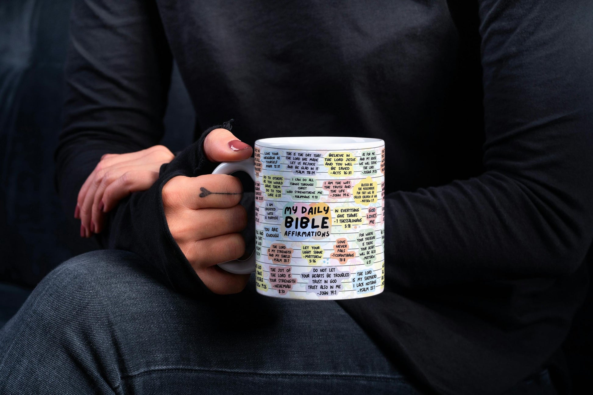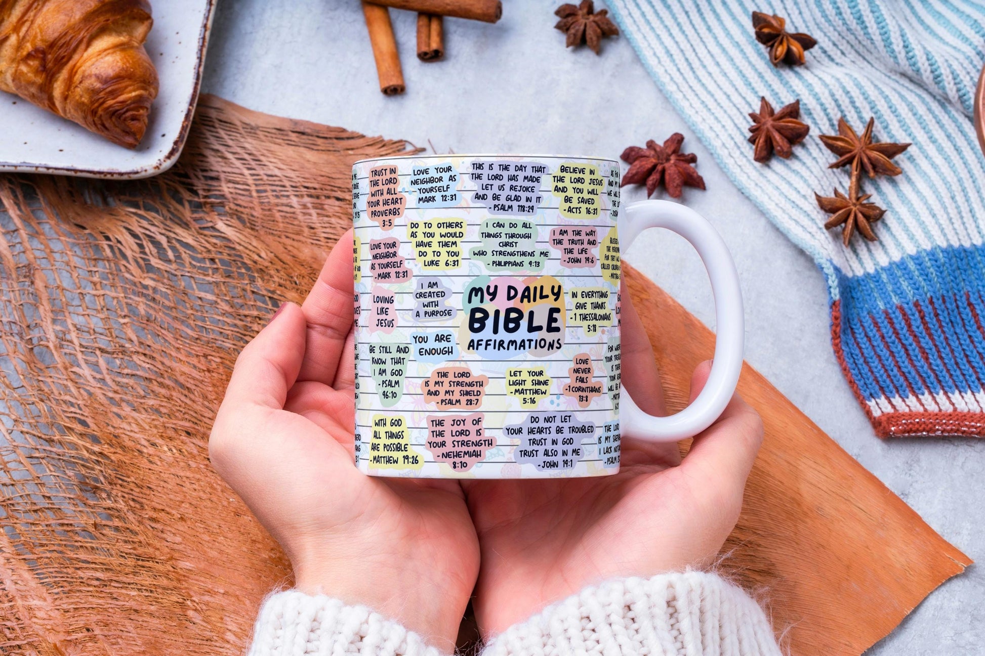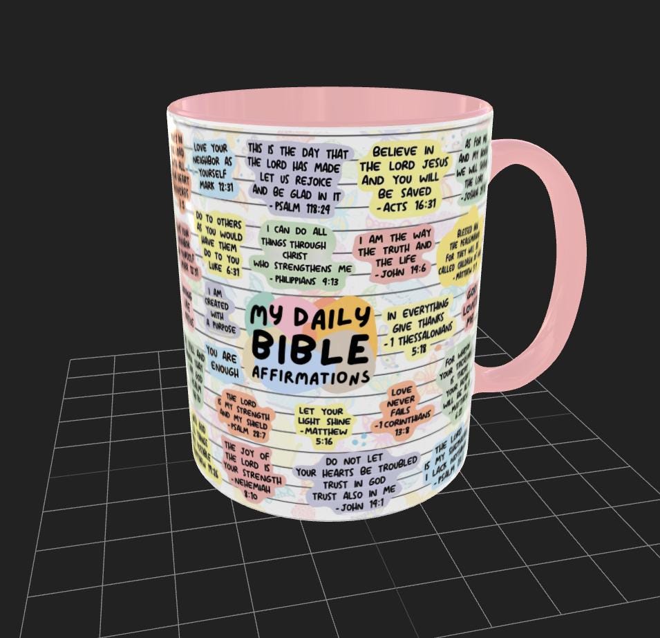 Start your day with faith and positivity with our "My Daily Bible Affirmations" mug wrap. This beautiful design is perfect for anyone who wants to infuse their morning routine with inspiring messages from the Bible.
