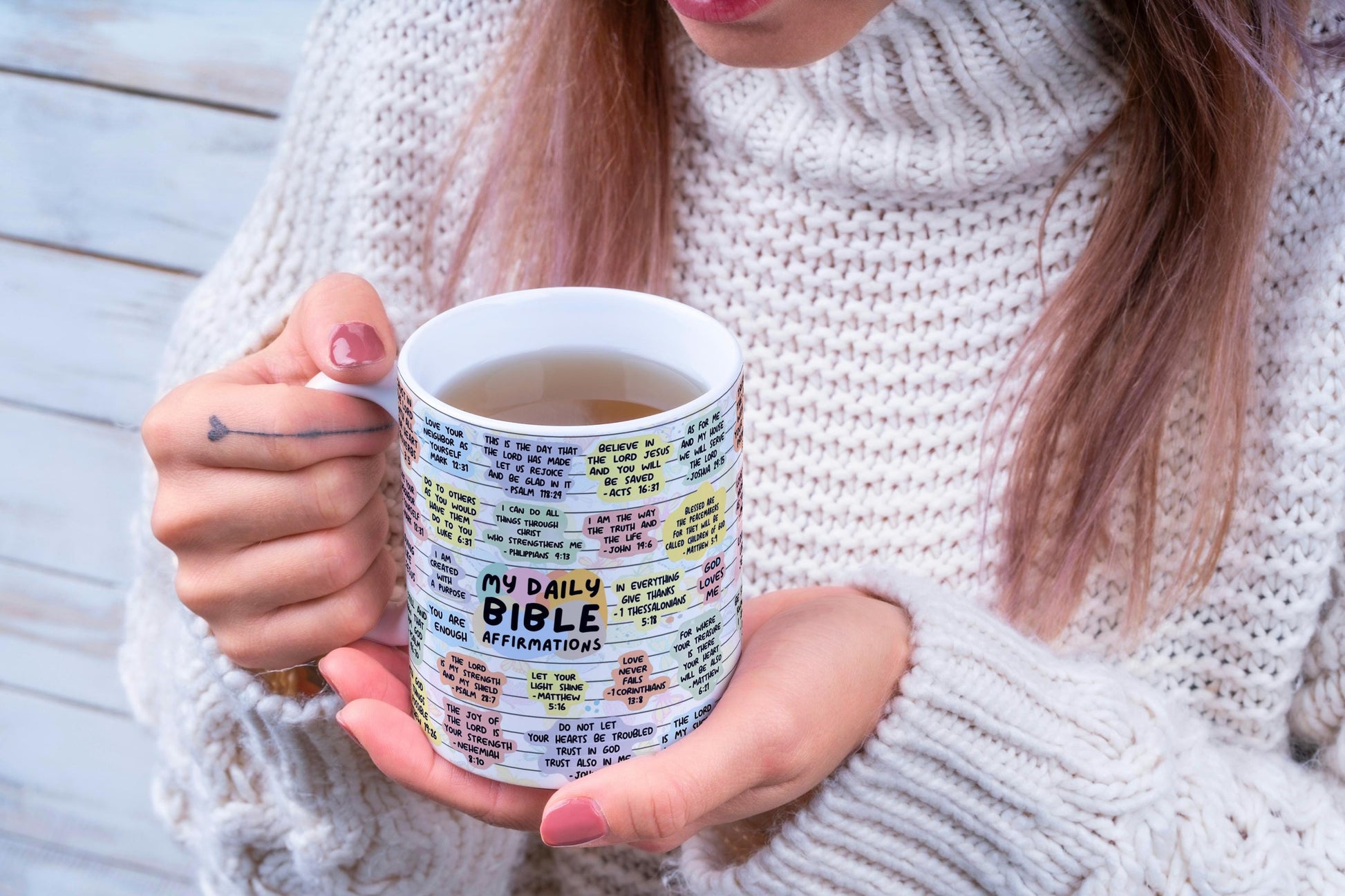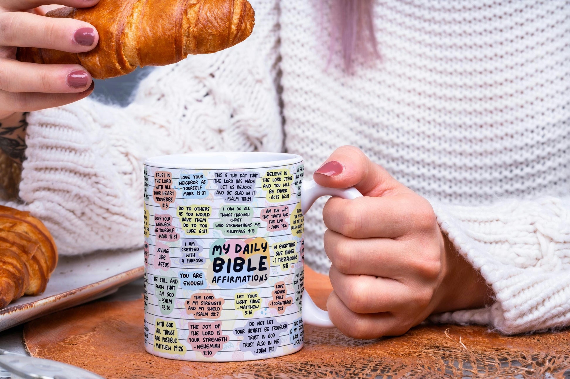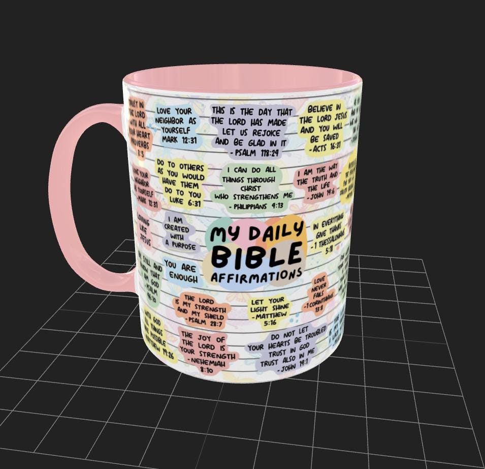 Start your day with faith and positivity with our "My Daily Bible Affirmations" mug wrap. This beautiful design is perfect for anyone who wants to infuse their morning routine with inspiring messages from the Bible.