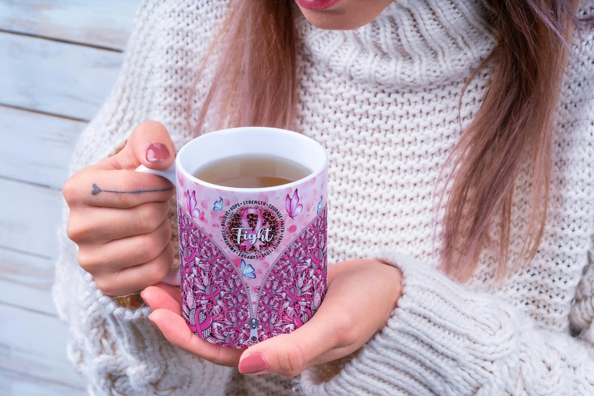 This design is perfect for anyone who wants to show their support for cancer awareness, celebrate a survivor, or simply embrace a message of **inner power and hope**. Use it as a daily coffee cup or a special tea mug to bring a smile and a sense of empowerment to your day. It makes a thoughtful gift for teachers, friends, or family members who appreciate inspiring designs and a touch of artistic flair.